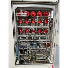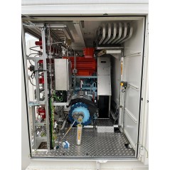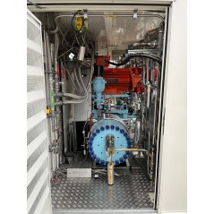 Unité de compression MC PHY pour station hydrogène mc Filling dual pressure 500 (350/700 bar). Composé du moteur de compression Nidec 75KW, compresseur Marboré / aventech, refroidisseur scirocco stefani, skid hydraulique eurodifroid, gaz Manifold marboré/Aventech, armoire électrique avec automates siemens. Dans un container Etat neuf.
